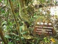 在雨林区,所到之处尽是奇形怪状的植物,科研人员和景区规划者们细心地为雨林中的花草树木或立或挂地制作了写有植物中文名和拉丁文名的介绍性标牌,方便游人与热带植物“亲密接触”。我默默地望着从来寡言的树和花草,心想,如果时间允许,让我系统地观察、学习它们,哪怕能随口叫出它们的名字,而非走马观花般一逛而过该有多好。