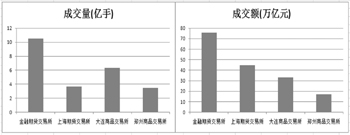 在四大期货交易所中,中国金融期货交易所成交金额最大,占总成交金额的44.32%,上海期货交易所紧随其后,占据四分之一左右市场份额。受美国干旱影响,豆类油脂品种大幅波动,市场交投活跃,大连商品交易所的成交量和成交额增幅最为迅猛,接近翻番,尤其是豆粕,成交量放大超过5倍。