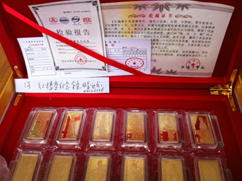 今年2月,当王安带着她收藏的黄金纪念币到甘肃省金银贵金属珠宝玉石饰品质量监督检验站做鉴定时,才发现自己收藏的这些打着由“中国金币总公司”、“上海造币厂”等发行的“神九纪念金币”、“2013年蛇年金条”等只是一堆废铜烂铁,“根本就不含金,先后被骗了10万多元”。随后她向兰州市公安局刑警支队报案。