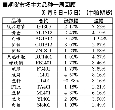 期货市场主力品种一周回顾[8月9日-8月15日]