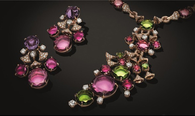 本系列首饰采用紫水晶、橄榄石与红碧玺等珠宝,绽放喜悦的活力,将中央的小型钻石衬托得更加璀璨夺目。这些造型精巧的珍贵珠宝以现代风格重新诠释