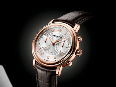 计时装置位于三点钟和九点钟位置,指针是雷蒙威最经典的款式,镀以玫瑰金,和金色的数字交相辉映。表壳直径为41毫米,最后搭配经典的棕色鳄鱼皮表带,赋予高贵阳刚之气。