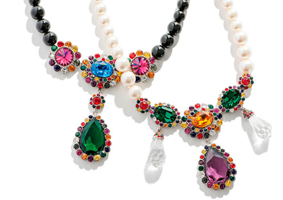 Miu Miu(缪缪)最新2014早春度假系列珠宝通过独具匠心的色彩和材质,打造出风格新颖独特的耳环、手链和项链。这些代表作品再现了经典的Miu Miu风格。黄铜项链和耳环与多彩水晶相得益彰,采用有机玻璃打造的手链则饰以宝石环扣衔接。该系列珠宝现已在所有Miu Miu店铺有售。