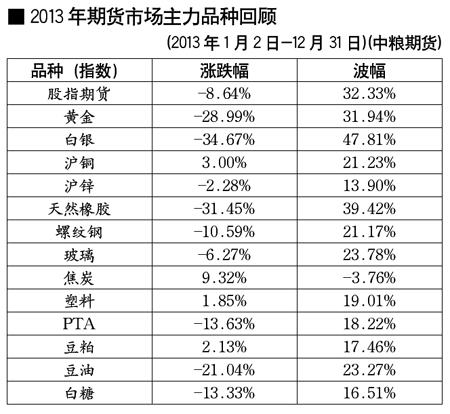 2013期货市场主力品种回顾[2013年1月2日-12月31日]