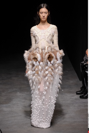 法籍华裔设计师殷亦晴(Yiqing Yin)设计的2014春夏高级定制女装秀日前在巴黎时装周上举行。图为模特在展示殷亦晴的时装作品。