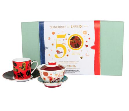 2014年,是香港著名茶庄品牌福茗堂的「巧手」主题年,同时,为庆祝中华人民共和国与法国建交五十周年,福茗堂茶庄与法国瓷都里摩日(Limoges)的栢图(Bernardaud),携手合作设计了一对限量1,964件,融合两国国饮文的中国盖碗茶盅与法国咖啡杯,并由栢图负责生产。
