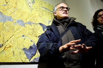 法国新现实主义画家杜皮尔·米歇尔正在介绍他的作品《黄色斑马线》 |