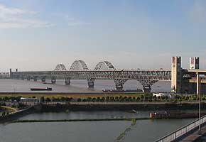 对航碍大桥进行改造。以南京长江大桥改造为例,有关专家提出:一是加高桥墩,抬高桥梁;二是改造大桥,使其中一个桥孔提升为活动桥;三是变公铁两用为公路专用桥,下层铁路桥的净空以利航运;四是维持大桥现状,另在桥下建船闸。这几种改造方案是否可行,还须进行科学论证、评估。