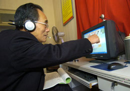 日前,有“中国蔬菜之乡”美誉的山东省寿光市设立农业信息服务中心,通过网络视频为分散的蔬菜种植户提供实时咨询、诊断等服务。图为朱振华高级农艺师通过网络视频为菜农提供咨询服务。本报记者:朱峥