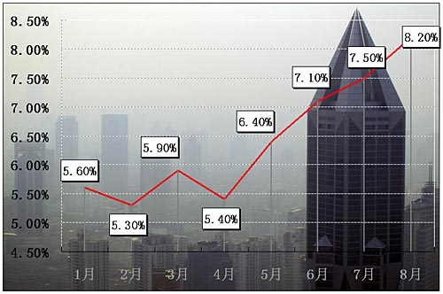5.4%、6.4%、7.1%、7.5%、8.2%……房价的攀升,从数据上让人感觉压力很大。