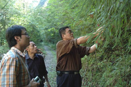 中国科学院植物所野外调查队队长王忠涛等专家在白果林场观察植物并采集标本。王金涛