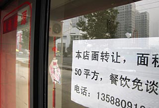 | 1月8日,杭州市闹市区的一个房产中介公司打出了转让店面广告。随着近期二手房地产市场遇冷,一些规模小的房产中介纷纷退掉位于闹市区的店面,转而寻找成本更低的地段另谋发展。新华社记者