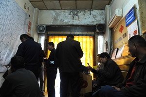 逼仄的投注站里,弥漫着香烟的味道。总有那么几个人或十几个人“驻守”在这里,他们对着悬挂在墙上的福彩双色球走势图苦思冥想,间或用笔在纸上“推算”,也有一筹莫展的,就那么无所适从地观望。