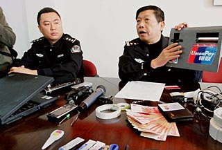 安装由MP4改装的摄像探头窃取银行卡的卡号和密码后,犯罪嫌疑人王某伙同汤某某伪造银行卡窃取储户银行卡内存款21.6万元。25日,经过近10个月的缜密侦察,福州市公安局经侦支队破获这起特大伪造银行卡诈骗案。 去年5月,福州警方接到某银行报案,有一客户反映称手中的银行卡未丢失,但卡中的的21.6万现金在异地被取走。接到报案后,民警成立专案组,循线追查,终于锁定两名犯罪嫌疑人并展开抓捕。今年3月17日,在南京警方的协助下将犯罪嫌疑人王某抓获归案,缴获作案用电脑一台、MP4改装的摄像探头一套、仿真银行面版读卡器一套、门禁一套、现金1000余元等赃款赃物。 经查,犯罪嫌疑人王某伙同汤某某于去年4、5月间两次流窜至福州,选择人员比较密集的二十四小时自助银行作为作案地点,安装读卡器和自制的由MP4改装的摄像探头,当客户刷卡时,就被摄像探头窃取密码。犯罪嫌疑人根据窃取去的卡号和密码,通过电脑、写卡器等工具伪造出储户银行卡提现或转账,窃取个人现金。目前,犯罪嫌疑人王某已被刑事拘留,另一名犯罪嫌疑人汤某某警方正在追捕,案件还在进一步审理中。