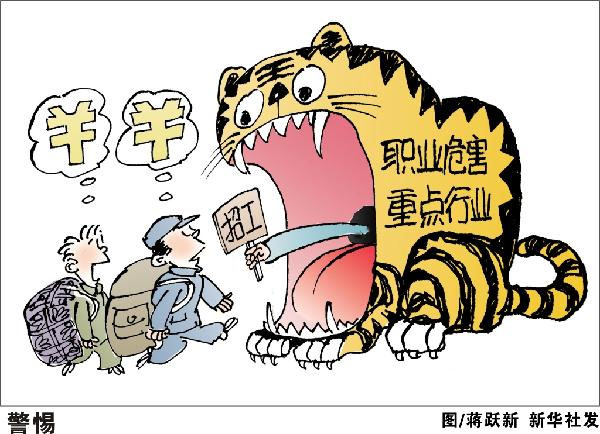 目前,外出务工人员多集中在建筑、矿山开采、煤矿、机械加工、皮革生产、化工、农业等职业危害重点行业,因接触职业危害因素而患职业病的风险很高,职业健康问题日益受到关注。卫生监督部门的专家提醒,在存在职业危害因素的企业上班前应进行职业健康检查,看自己是否适合所从事的工作。同时应接受职业卫生知识、操作规程的教育和培训。在岗期间应参加企业定期组织的职业健康检查,离岗时也应进行职业健康检查。工作时应按章操作,正确使用职业病防护设施及个人防护用品,拒绝违章操作。随时留意自身的健康状况,注意保存在企业工作的证据。