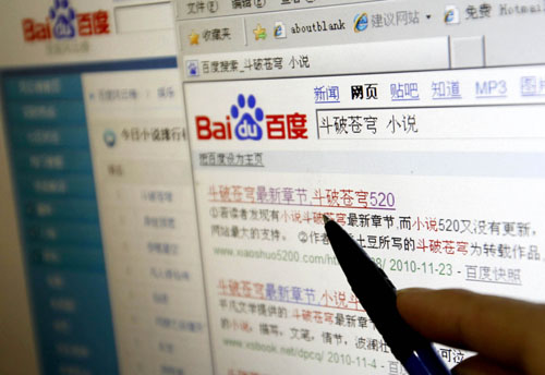 记者调查发现,盛大文学将讨伐的矛头指向百度文库,认为这里已成为滋生盗版的温床,盗版模式从单纯盗贴文字内容转变为形成网络盗版文学利益链。百度则认为,相对于收费的盛大文学,百度文库提供了一个免费的分享平台。用户上载分享的内容存在盗版情况,但仅占文库内容的很少部分。记者 裴鑫 摄 |