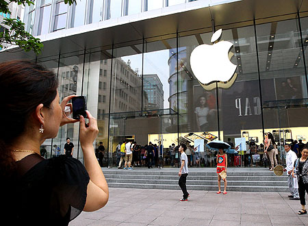 我们艳羡苹果,但苹果的魅力和威力是建立在雄厚的知识产权资产之上的。苹果公司拥有260件以上的商标,仅2011年在美国就申请了676件专利。图为7月12日,游客在上海南京路上的苹果专卖店前拍照。记者 陈飞 摄 |