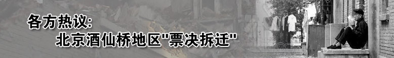 | 其实,目前这种由开发商具体实施、完全市场化运作的危改拆迁做法,弊端甚大。在现代社会,政府主导的危改拆迁,理应是一项福利措施。对于那些无力进入市场购置新房的低收入人群,政府应为他们提供廉租房或福利房,或者为他们支付购买商品房的差价;而不该把这样的棘手事推给开发商,让他们去想方设法逼居民就范。而北京电控阳光房地产公司和酒仙桥街道办的前述做法,可以说很不道德,哪怕是打着“民主”的旗号。[详情] |