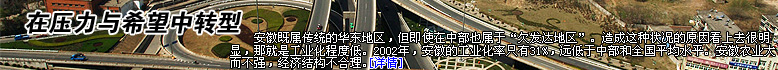 经济年增长率从2002年的6.8%到2006年的14%,当我们考察安徽县域经济发展时不得不惊讶于这一数字的变化。而安徽省发改委的有关负责人介绍,从2005年开始,县域的发展速度已超过全省平均水平,安徽县域经济出现了“V”型大反转,步入加速发展的新阶段。 2002年,安徽县域经济的主要指标只有全国平均水平的一半。[详情] | | |