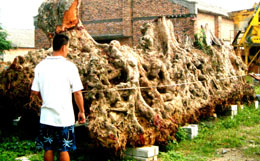 北海市一位根雕爱好者日前在灵山县寻获一个树龄超过250年的荔枝树根,长9.6米,宽2.8米。一名广东客商提出用价值60万元奔驰车交换被其谢绝。
