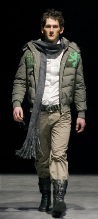 记者发现,本季男装在领部别具特色,高领针织衫、条格围巾、各色领带,可谓花样百出。这同时也尽显了设计师的特殊用意,让男人们既可以表达品位又充分抵御了寒冷。 本季秋冬男装不仅沿用了纯色和条格的常备围巾单品,而且在领带上大做文章,基本都以宽大领带配窄领西服示人。另外,个别的衣领款式也做得非常独特,像有款西装的领子就做成了帽子,这种大胆独特的设计也为那些寻求个性化的男士们提供了多元的选择。杉杉·SPORT的男士休闲服则在衣领部位大胆运用撞色,以纯色摩托外套搭配胸领处微露的亮色针织衫的形式,来呈现领饰的别致。 |