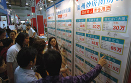 5月17日,购房者在房交会上关注温州炒房团房源。