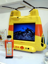 东京六本木一家电器商店拍摄的直升机造型的液晶电视。这家商店最近新推出了一系列薯条、手提包、直升机、消防车等卡通玩具造型的液晶电视,电视大小从9.6英寸到42英寸不等,受到顾客的欢迎,成为很多家长装饰儿童房的必需品,生意火爆。