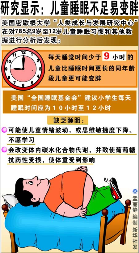研究显示:儿童睡眠不足易变胖【图】