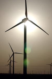 风能资源丰富的甘肃省酒泉市将启动千万千瓦级风电基地建设项目。甘肃省根据国家风电发展规划,提出“建设河西风电走廊,打造西部陆上三峡”的战略目标。按照规划,酒泉风电基地建设选择了风电建设条件相对较好的8个风电场,规划总装机容量3565万千瓦。到2010年底,酒泉风电基地累计装机要达到341万千瓦,到2020年累计装机容量达到1065万千瓦。