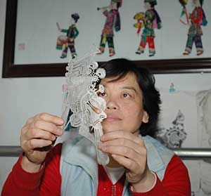 记者日前走进山西省侯马市赵翠莲女士家里时,她们一家人正忙着制作一批关公头像造型的皮影。这些关公皮影不再是演戏的道具,而是要用木框装裱起来挂在墙上作为一种精美的装饰品。 赵翠莲告诉记者,有许多新婚家庭和政府部门来订购这种装框的皮影,用做家居装饰和馈赠纪念品,这种新式皮影一年来使她们家增收了三万多元。赵翠莲说,看皮影戏的人越来越少了,开发出用于欣赏和收藏的皮影作品是传统民间艺术家自我调整、适应时代的方式。 皮影戏最早诞生在两千年前的西汉,成熟于唐宋时代的秦晋豫三地,盛极于清代。今年50岁的赵翠莲从19岁开始从事皮影的表演和制作,曾拜皮影大师廉振华先生为师学习皮影雕刻,被誉为山西省民间艺术大师。 皮影本身蕴含着深厚的文化底蕴和收藏价值,而且色彩鲜艳,造型精美,具有很好的装饰性。从2006年开始,赵翠莲给传统皮影装上木框并将它们推向市场销售,取得了市场认可。