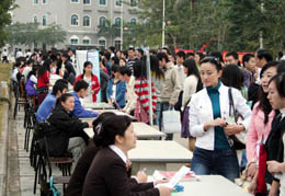 当日,海南省近年最大规模的高职高专毕业生专场招聘会在海口经济职业技术学院举行。超过400家单位提供了4700多个工作岗位,参加招聘会的高职高专毕业生有7500多人。据了解,2008届高职高专毕业生当前就业形势良好,部分专业十分紧俏。
