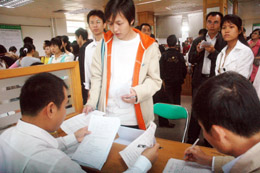 日前,海南2008年第一届人才劳动力招聘会在位于海口市的海南省人才劳动力市场举行,求职人员免费入场。当日,共有近百家单位现场进行招聘,提供大量服务员、营业员、收银员等春节前较缺人手的服务性岗位。