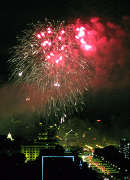为迎接奥运会开幕,天安门8月2日试放焰火。