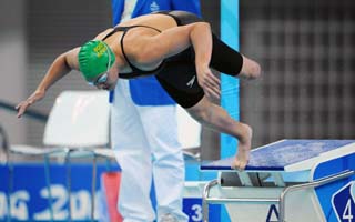 当所有人都以为杜托伊特会就此结束运动生涯时,这个性格坚强的女孩在三个月后重新回到泳池,而那时她才刚刚开始能够走路。也许,泳池中振臂溅起的水花,才能让这个女孩受伤的心得到抚平,可以让她生活的信心得以延续。 2003年在全非运动会上,杜托伊特在和健全人同场竞技中,获得800米自由泳金牌。但杜托伊特并没有停止创造“奇迹”的步伐,她并不满足于在残奥会上拿金牌。2008年5月3日,杜托伊特在西班牙世锦赛上获得公开水域10公里第四名,终于敲开了奥运会的大门,获得北京奥运会的参赛资格。 “我大多数时间里一直和健全人参加比赛,因为这样可以让我感觉到我和她们一样,我是一个游泳选手,而不只是残疾人运动员。残奥会仅仅是我的比赛之一,对我来说,参加什么比赛并不重要,重要的是,只要我扎入水中,我就要拼尽全力,游出最好的自己。” |
