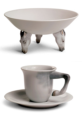 Sperlain设计的“EQUUS创品系列”。 该系列以马为元素进行再创作,由一组早餐系列作品组成,包括了茶壶、咖啡杯、调味瓶、茶杯、黄油碟、餐巾扣、早餐碗等等,另外还有开信刀、放大镜等作品。所有这些作品均包含有一个共同元素——马蹄,在这组作品中或作为杯子把手,或作为餐碟的装饰。 与雅致其他作品一样,“EQUUS创品系列”也是在其西班牙总部全手工制作而成的。从最初的草图设计到最后的高温窑烧,每一个制作工艺均由艺师精心完成。 “一日之计在于晨”,雅致希望通过“EQUUS创品系列”倡导更为优雅精致的生活。 (资料照片) | |