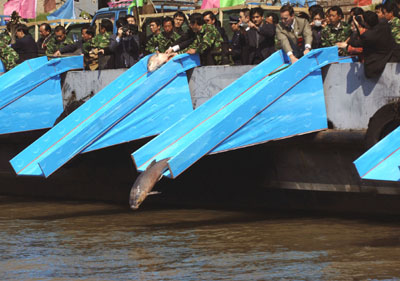 4月9日,3200多尾大规格长江“四大家鱼”(即青鱼、草鱼、鲢鱼、鳙鱼)亲鱼在安徽安庆放流,这些亲鱼均已达到或将要达到繁殖年龄。这也是我国首次在长江干流人工增殖放流大规格“四大家鱼”亲鱼。本次活动由长江渔业资源管理委员会和世界自然基金会联合主办,将进一步改善长江流域渔业资源的状况。