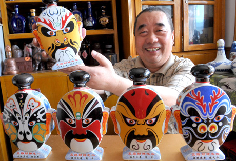 安徽滁州市六旬老人王金平,2003年开始热衷于收藏酒瓶。目前,王金平收藏了以陶瓷瓶为主的酒瓶约1500种,他也成为国内酒器收藏界的名人。
