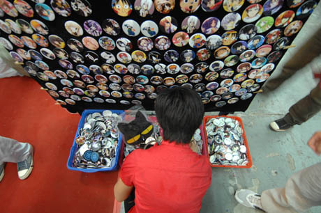 8月12日,在动漫电玩节上,一位市民在挑选动漫徽章。
