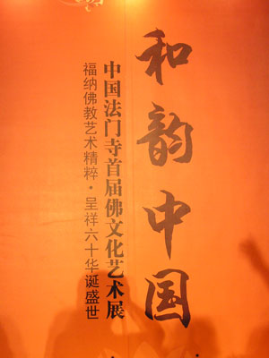 为了迎接新中国六十华诞,祈福和谐盛世,佛教圣地法门于9月29日至10月30日在合十舍利塔举办主题为“和?韵?中国”的中国法门寺首届佛文化艺术展,千余件佛教稀世珍品与众多世界顶尖的佛文化艺术大师首次亮相这一国家级别的展出活动。这是法门寺文化景区继今年5月9日举行佛指舍利安奉大典后的又一佛文化盛事,为正成井喷态势增长的国庆中秋长假游客奉献文化盛宴。