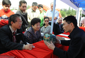文物鉴定专家在为收藏者鉴宝。新华社记者