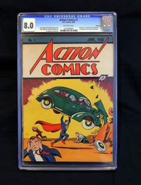 美国漫画收藏家们今年以来频频出手,继2月份两次刷新单本漫画拍卖纪录后,3月29日,一本保存极为完好的超人漫画首发刊拍出150万美元高价。 这本1938年版《动作漫画》第一期29日在拍卖网站www.comicconnect.com上以150万美元成交。拍卖网站所有者斯蒂芬·菲什勒说,这本漫画在网站上发布数分钟后,即被名为“铁杆漫画粉丝”的买家以150万美元拍下。 这本首发刊标志着身穿蓝色紧身衣、披红色斗篷、胸前印有S标记的超人形象首次面世。同一版本的超人漫画曾在2月份拍出100万美元高价。几天后,标志着蝙蝠侠诞生的1939年第27期《侦探漫画》拍得107.55万美元。 业内人士估计,目前该版本超人漫画仅存约100本,但保存情况良好的为数不多。此次拍出的这本漫画保存得相当好,比2月份拍出百万美元的同版本评级还要高。 据拍卖网站介绍,它此前被夹在一本旧电影杂志内,半个世纪后才在匹兹堡的一场旧货拍卖中被人们发现。 这本漫画当年发行时售价仅为10美分。