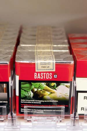 12月6日,在比利时的利赫特费尔德,外包装上介绍与吸烟有关疾病的香烟被摆在柜台上出售,以提醒人们吸烟有害健康。近年来,比利时各种禁烟措施成效显著,烟民比例几乎呈直线下降趋势。