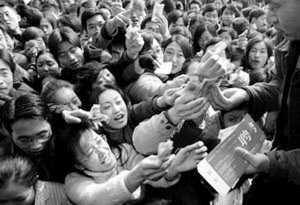 求职的大学生就像待嫁的姑娘,双方都觉得合适就OK。在双方没有达成一致时,就需要有第三者出来撮合。古人云:千里姻缘一线牵。这个第三者就是政府、就是社会机构。两会刚结束,教育部、人事部和劳动与社会保障部就推出了全国大型高校毕业生网上招聘活动,政府确实在为老百姓做实事,为每年几百万的高校毕业生找婆家。网上招聘降低了就业成本,减少了很多大学生的奔波劳顿和费用,尤其是外地大学生。记者在朝阳人才市场的现场问过六七个学生,知道三部委为你们办的3月20-26日的网上招聘会吗,他们都知道,在这之前也多次往其他网站投过简历,结果却都是石沉大海。其中一个女生说,她在网上投了100多份简历,只有一家单位打了电话,结果还是不行。 记者建议:如果你很想去哪个单位,你就每天往那投简历,万一邮件没收到,或不小心他们给删了,不就错失机会了吗?目前来看,网上招聘