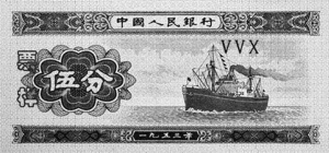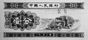 编者按:我国已经使用了50多年的壹分、贰分、伍分纸币,从4月1日起正式停止流通。收藏品市场上,壹分、贰分、伍分纸币的交易随之开始活跃起来,价格飙升。近日,北京一家邮币卡市场里,“无码版”一张壹分纸币的单价是1角左右,一张贰分纸币标价为2角左右,伍分纸币更是暴涨到了面值的20多倍,卖价为1元多。 随着前三套人民币相继退出流通领域,退出流通的人民币已经成为收藏者和投资者格外关注的藏品,收藏界正在掀起一股人民币收藏热潮,退出流通领域的第一、二、三套人民币的市场价格,将随着时间的推移不断攀升。