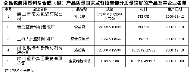 为维护消费者的合法权益,促进食品包装行业健康发展,国家质检总局组织对食品包装用塑料复合膜(袋)产品质量进行了国家监督抽查,共抽查了北京、天津、河北、山东、江苏、上海、浙江、广东、福建等9个省、直辖市100家企业生产的100种产品,产品抽样合格率为69%。