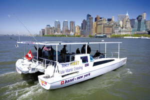 5月8日,双体全太阳能动力船“太阳21”号正驶近美国纽约曼哈顿。该船于2006年10月16日从瑞士巴塞尔的码头起航,8日到达纽约,航程共计1.3万公里,这是世界上首次依靠太阳能完成横穿大西洋壮举。该船12吨重,14米长,船顶是一块60平方米的太阳能电池板,为船体的两台发动机提供能源。据报道,“太阳21”号在旅途中共“生产”了2000千瓦时的太阳能。