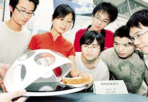 近日,在2007届浙江工业大学工业设计毕业展上,一款由学生设计的太阳能煲,吸引了众多参观者的目光。这种太阳能煲采用透镜聚光的原理,通过凸透镜汇聚光线获得热能。