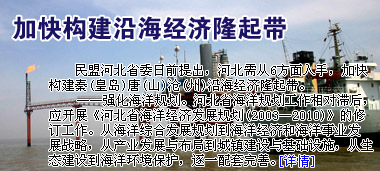 | 河北要实现建设沿海经济社会发展强省的目标,发挥区位优势是关键。河北省区位优势何在?如何将优势转化为生产力?如何处理好区域经济发展中的各种关系?带着这些问题,记者采访了中国人民大学区域经济与城市管理研究所教授孙久文。[详情] | |