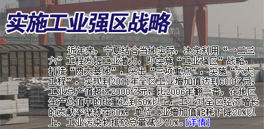 | 记者近日从宁夏回族自治区发展改革委员会获悉,这个偏处中国西北内陆的少数民族自治区正在投巨资建设亚洲最大的煤化工基地--宁东能源化工基地。这项被宁夏称为"一号工程"的建设项目在2006年--2010年间投资将超过1000余亿元。[详情] | |