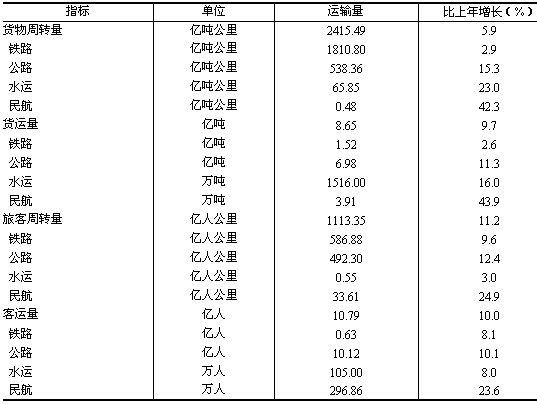 表5:2006年全省各种运输方式完成运输量